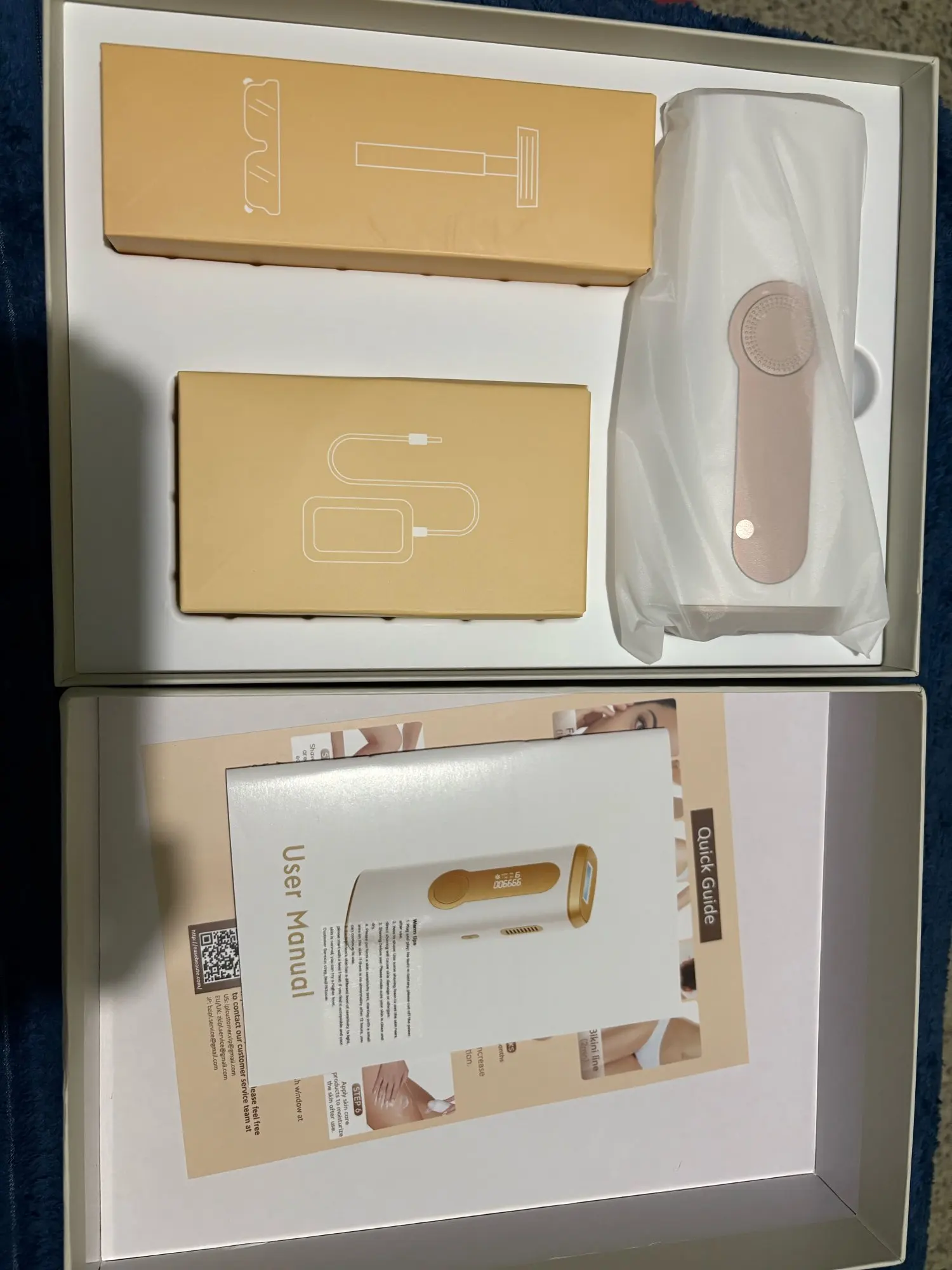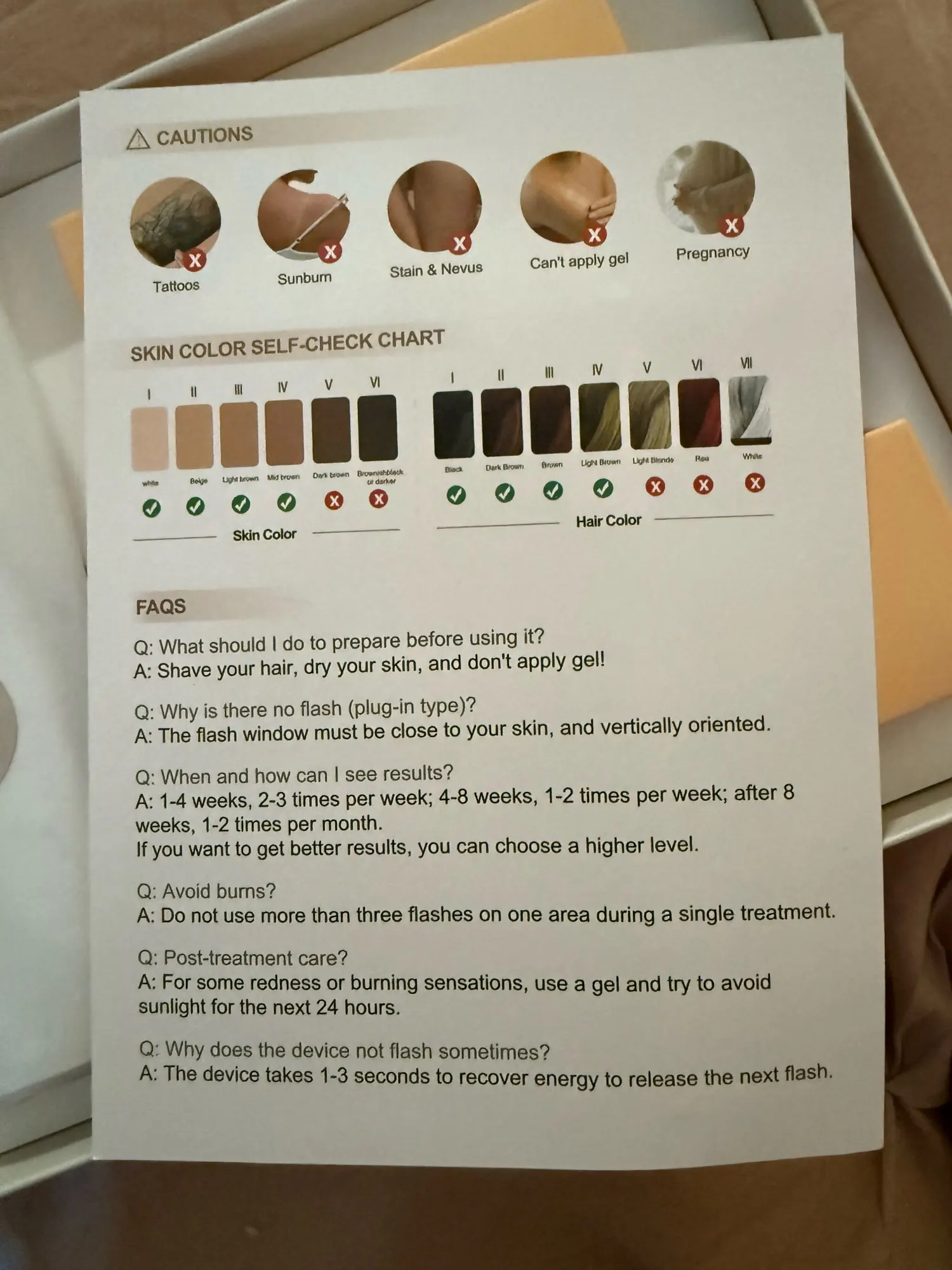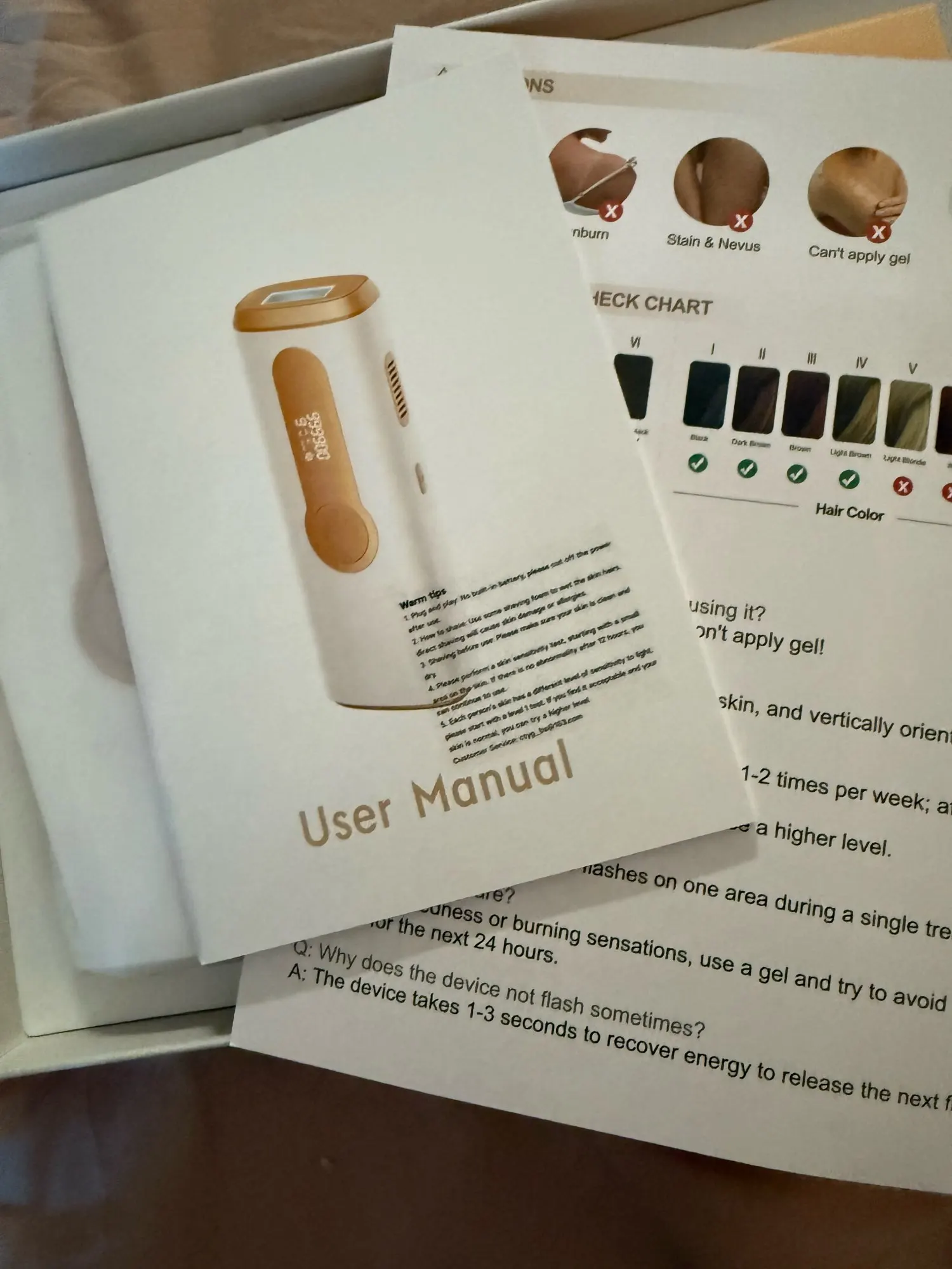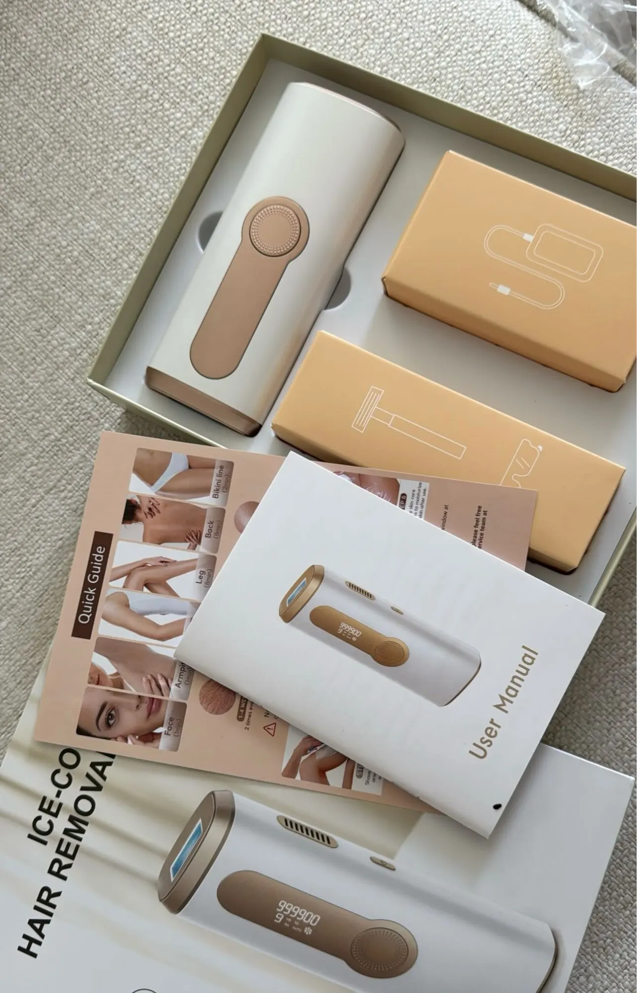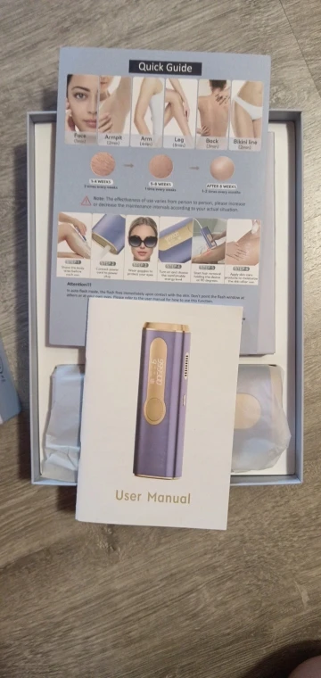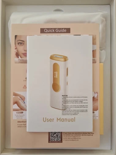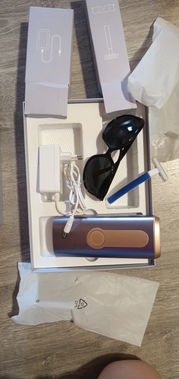 Each kit comes with the IPL device, power adapter, protective glasses, and a user guide — everything you need to start right away.
